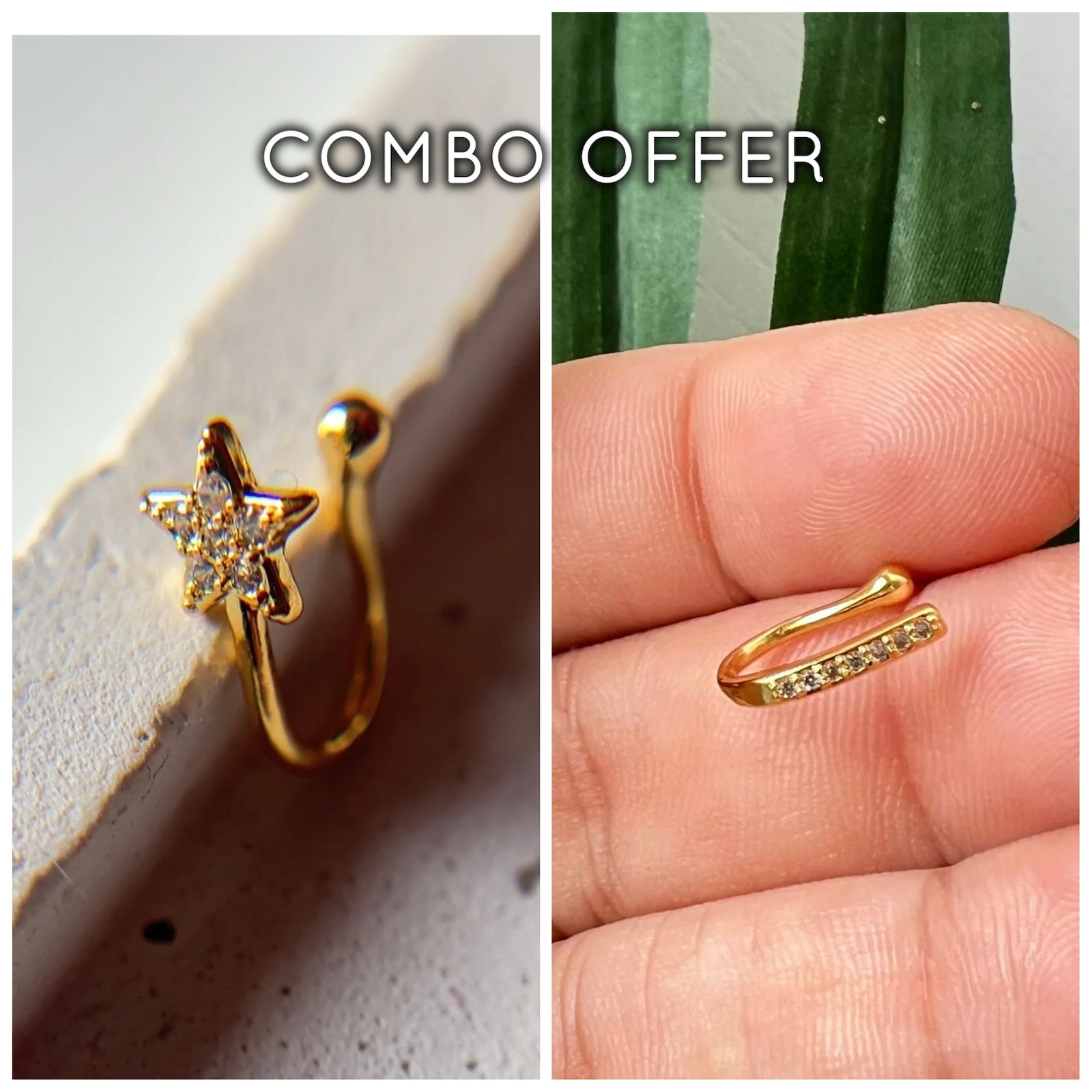 COMBO of SLIM AND STAR nosepins (press on)(anti-tarnish)
