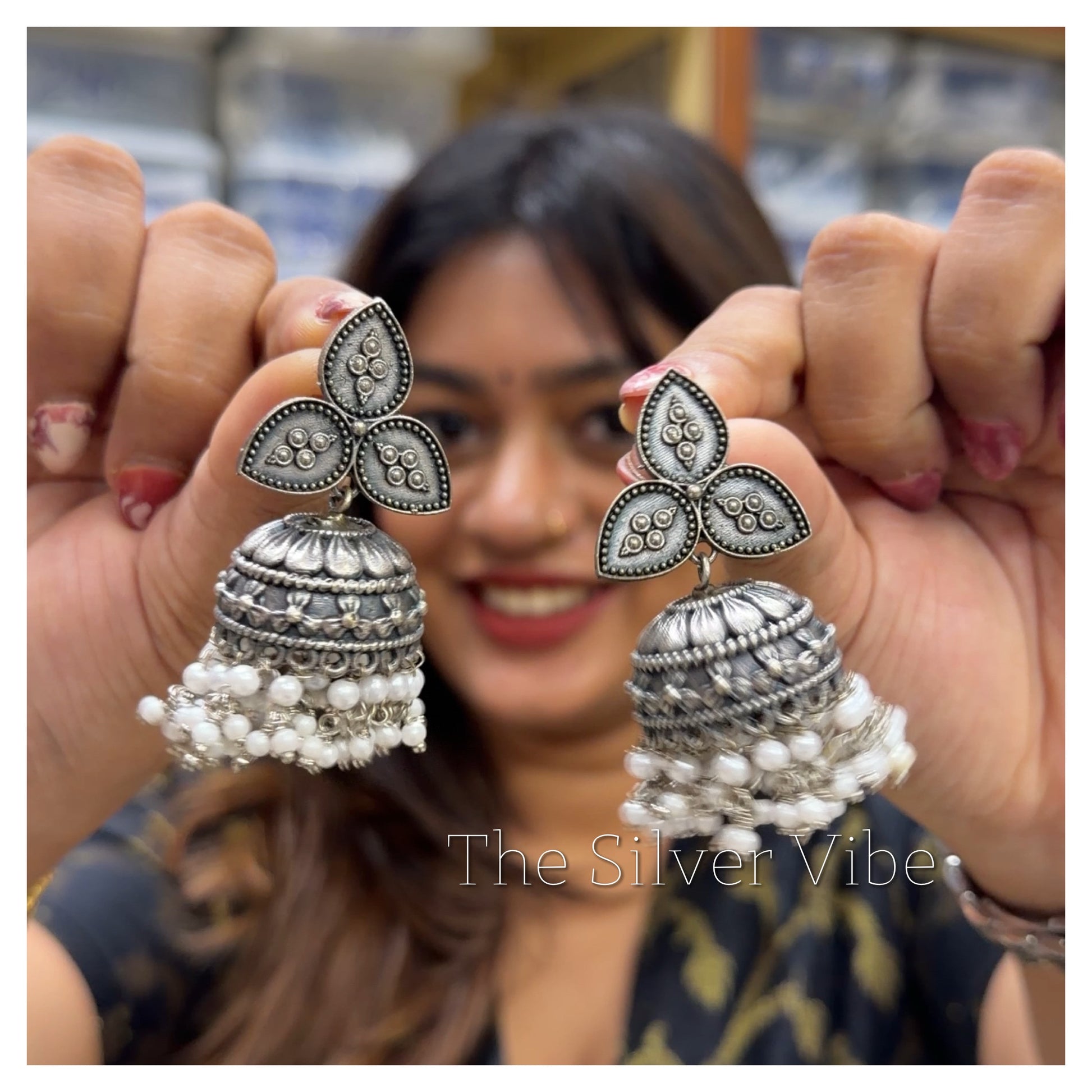 Add a touch of bold elegance to your look with these beautifully crafted black-polished jhumkas. Designed with delicate white beads that add a soft contrast, this pair blends traditional charm with a modern, premium finish. Perfect for festive wear, casual outings, or adding a statement touch to your everyday style.