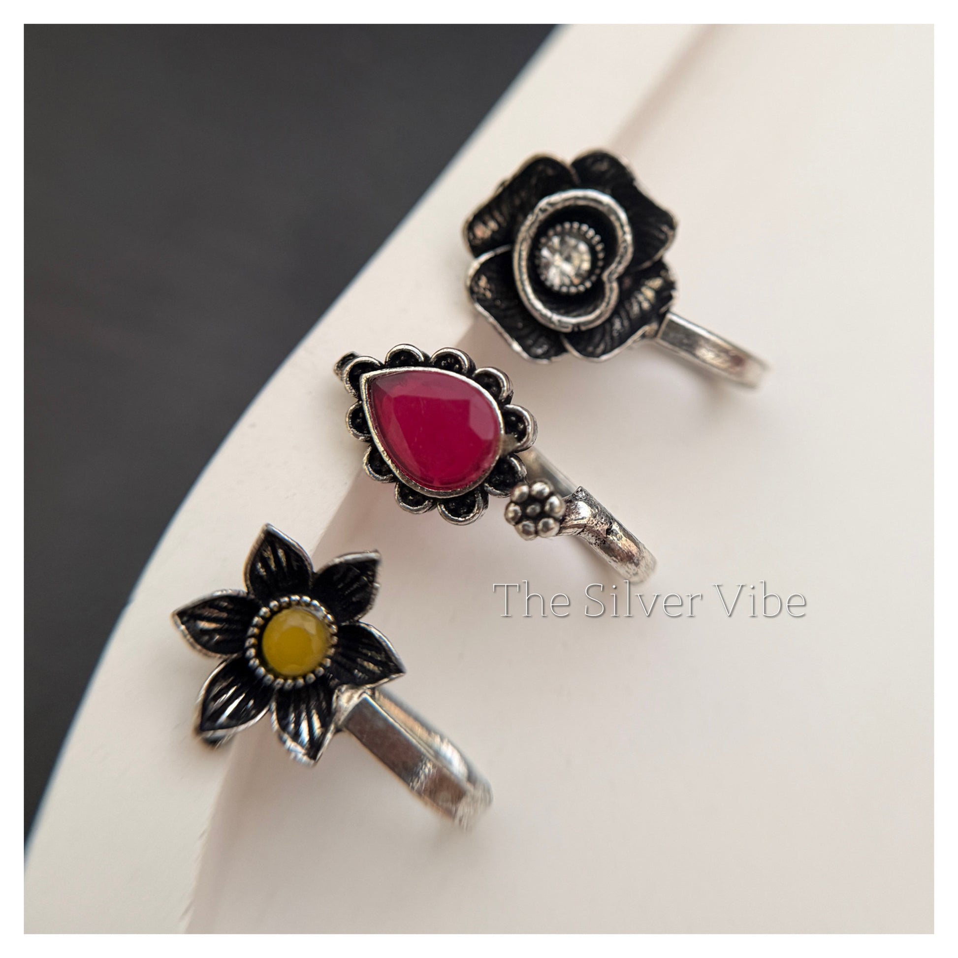 * Elegant floral-inspired oxidised nosepins with handcrafted detailing